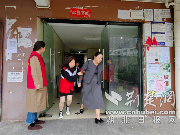 “请注意!请注意!山区有山体滑坡迹象,地质灾害即将发生,请居民立即按照预定路线撤离!”随着早期追踪小组的工作人员通过扩音器发出紧急信号警告,各小组迅速行动。疏散引导组召开引导员旗帜下,按照“先弱后幼、年老”的方式,敲门提醒居民,教导大家鞠躬,用衣服保护头部,并迅速移至紧急家庭紧急疏散路线。在此过程中,一名模仿“受伤”的老居民行动困难。撤离人员立即上前帮助医疗救援小组并与其互动。接到通知后,医疗救援队带着急救设备迅速赶到,对“伤者”进行止血、包扎等紧急处理,然后将他转移到安全地点进行进一步观察。